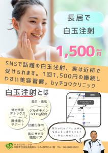 - 白玉注射(グルタチオン):600mg1,500円(美白・デトックス・抗酸化に)
